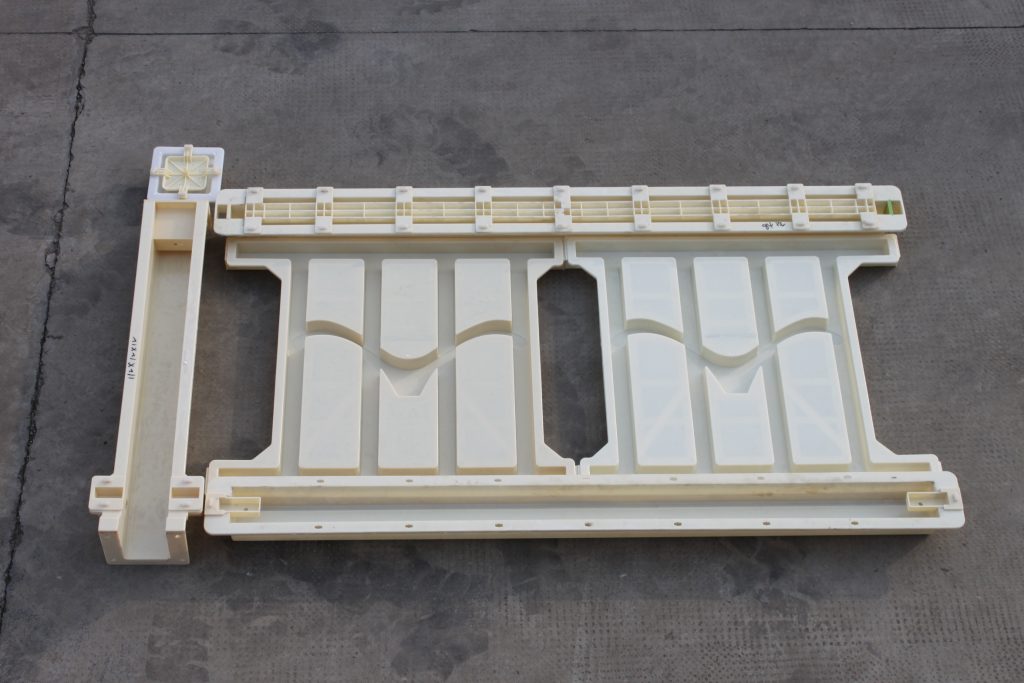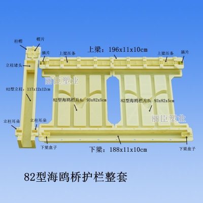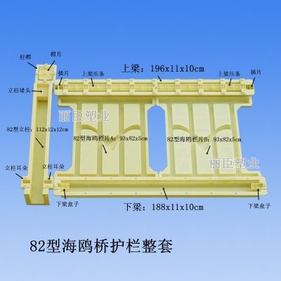 專用于國家高鐵橋梁建設,采用全新ABS工程塑料經過高溫注塑加工而成的高鐵橋梁圍欄模具,主體欄片采用海鷗圖案設計,共分為三個組成部分。