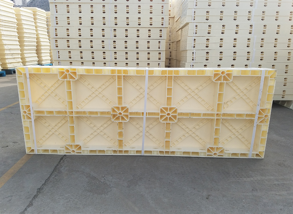 塑料建筑模板周轉次數能達到100次以上,還能回收再造。溫度適應范圍大,規格適應性強,可鋸、鉆,使用方便。模板表面的平整度、光潔度超過了現有清水混凝土模板的技術要求,有阻燃、防腐、抗水及抗化學品腐蝕的功能,有較好的力學性能和電絕緣性能。能滿足各種長方體、正方體、L形、U形的建筑支模的要求。