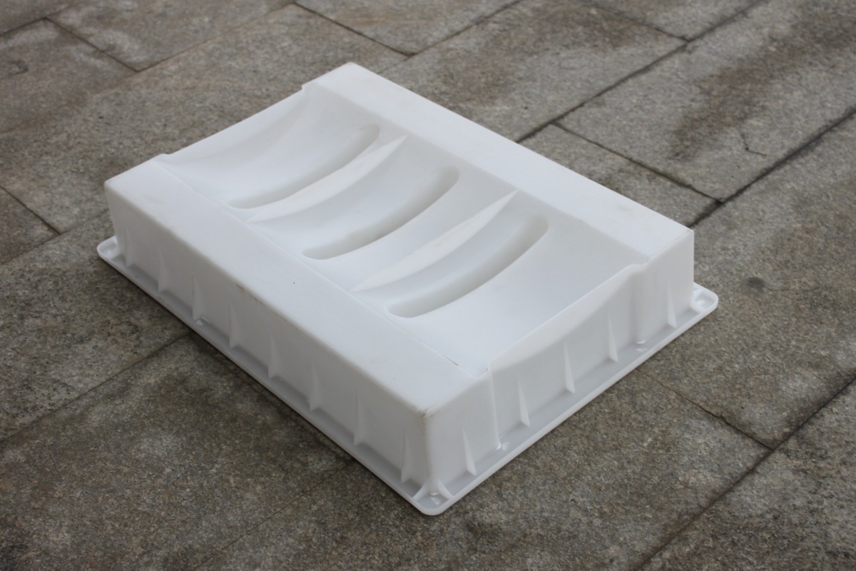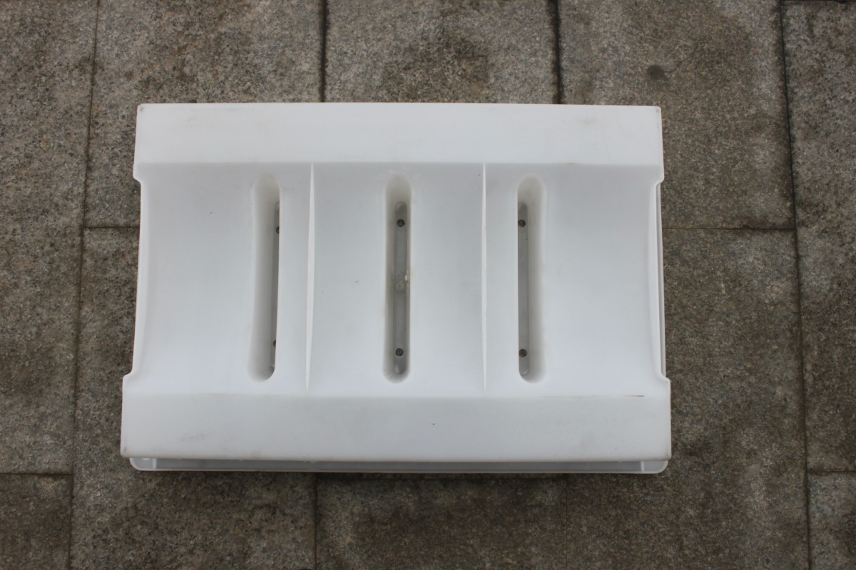塑料排水蓋板模具采用PP聚丙烯材質注塑加工工藝,主要設計結構以三孔流水結構,排水蓋板成品圓弧內凹設計,更加方便溝渠等泄水排水。在排水蓋板模具的周邊采用了加強筋設計,使得蓋板模具在水泥產品脫模過程中更加牢固及穩定。