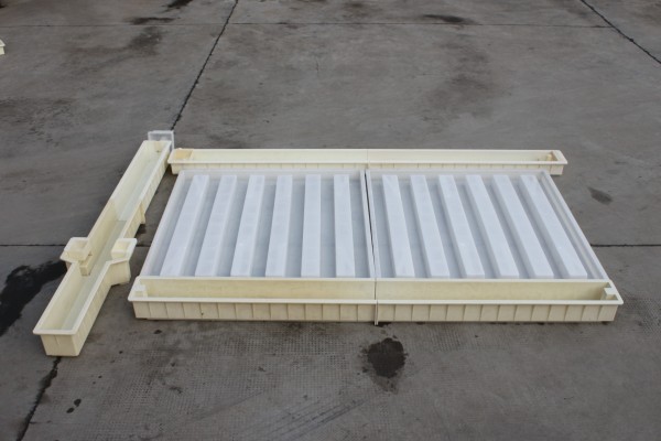 3.路基防護柵欄欄片模具則采用的的PP聚丙烯塑料材質,在整套路基防護柵欄模具中共由2塊組成,尺寸為149.5*140.5*9cm。關于欄片模具為何也不采用ABS塑料來制作,主要原因就是欄片自身面積太大,而ABS材質的特性為密碼高,強度大,但是韌性不是很好,在實際操作過程中相對更為容易損壞,所以具備高韌性的PP聚丙烯材質更為適合。