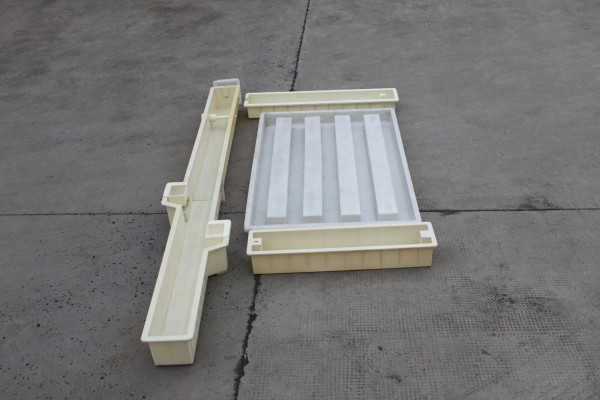 欄片模具則采用PP聚丙烯材質(zhì),更好的模具韌性對施工面積較大的水泥制品更為有利。水泥護(hù)欄欄片模具的尺寸為149.5×96.5x9cm,采用5幅式欄桿設(shè)計(jì)。